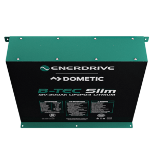 The new 300Ah ePOWER B-TEC Slimline Lithium Battery is specifically designed for deep cycle applications requiring a single battery with high amp-hour capacity. Ideal for camper trailers, 4WD auxiliary setups, caravans, small watercraft, low-power communication sites, or any application needing a compact yet powerful deep-cycle battery, the Enerdrive B-TEC Slimline offers exceptional performance.